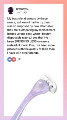 This template wins by borrowing the visual language of a real social post, which lowers skepticism and boosts believability—especially for a commodity-like product such as razors. The long-form testimonial delivers “why it’s different” without sounding like brand copy, while the bold, all-caps savings line makes the value hook instantly scannable. Social proof (reactions/like count) and curiosity (“my best friend swears by these”) are ideal for TOF awareness and an unaware audience: it educates through a peer narrative instead of hard selling. The clean pink gradient and isolated product shot keep the ad feminine and premium-feeling, reinforcing quality while the copy anchors affordability—an effective price–quality positioning combination for DTC grooming brands.