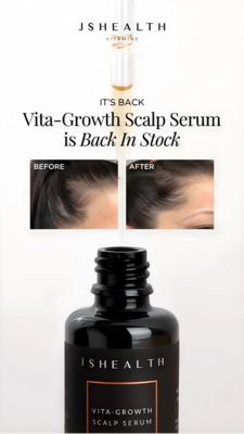 This template works because it combines two high-performing mid-funnel levers: availability and proof. “It’s back” creates a low-friction reason to act for people who were already considering a scalp treatment, while the before/after tiles satisfy the need for evidence without requiring long explanations. The tight crop on the hairline directs attention to the exact pain point (thinning/receding areas), triggering curiosity and an immediate mental comparison. The minimal white space and premium typography signal legitimacy and reduce “salesy” resistance, which is especially important in beauty claims. For solution-aware audiences in MOF consideration, this structure mirrors best practice: hook (restock), proof (transformation), then product identification (hero bottle) to drive a clean Shop Now decision.