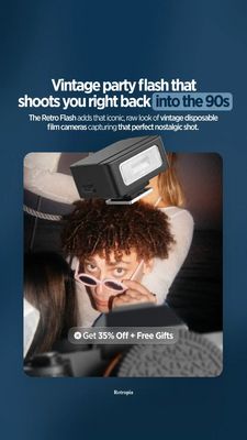 Designed for Gen Z and Millennials who love retro aesthetics, nightlife photography, and the “film look” trend. Best for impulse-friendly shoppers who respond to nostalgic references and clear, deal-led CTAs when discovering new camera accessories on Stories.