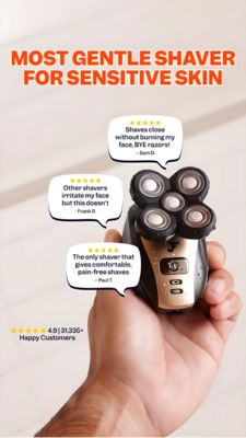 Adults who regularly shave and struggle with razor burn, redness, or irritation—especially people with sensitive facial skin looking to switch from manual razors. They are solution-aware, compare devices, and rely heavily on ratings and real-user comments before purchasing. Best suited to DTC shoppers on mobile-first placements.