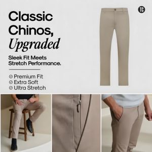 Designed for men who want a polished, office-to-weekend look without sacrificing comfort. It appeals to shoppers comparing fit, softness, and stretch performance, and to brands targeting premium, minimalist aesthetics with clear product proof.