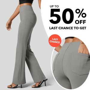 This square fashion promo template is built to sell women’s tailored trousers with an instantly clear, last-chance discount message. The design uses a clean light-gray backdrop and a full-height lifes...