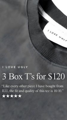 This 9:16 Story template is built for promoting a premium basic apparel bundle—specifically boxy-fit T‑shirts—using a clean, product-close-up aesthetic. The background is a monochrome, textured knit fabric shot with a ribbed collar and visible neck label, creating instant “quality you can feel” cues. Typography does the selling: a small brand line sits above a large serif price headline (“3 Box T’s for $120”), followed by a quoted customer review and a row of star icons to reinforce trust. The minimalist color palette (charcoal, slate gray, and white) keeps attention on the offer and makes the layout feel elevated rather than discounty. Strategically, it combines value-bundle framing with social proof—ideal for top-of-funnel audiences who aren’t actively shopping yet but can be hooked by a simple, easy-to-grasp deal. The close-up texture shot signals craftsmanship, while the 10/10 rating reduces perceived risk. Brands can easily customize by swapping the fabric photo, updating the bundle quantity/price, and replacing the quote with real review copy to match their voice.