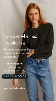 This 9:16 Story template promotes a casual cotton fleece sweatshirt with a calm, premium minimal aesthetic. A full-bleed lifestyle photo features a model in a dark crewneck sweatshirt and light denim against a soft beige/stone backdrop, leaving clean negative space for copy. The typography is modern and airy, with a large headline (“from overwhelmed to effortless”) followed by a short product descriptor, a five-star rating row for instant trust, and a rounded dark CTA button (“FIND YOUR COLOR”). Strategically, this creative is built for top-of-funnel awareness with simplicity and comfort triggers: it reframes the product as an effortless solution to daily outfit stress. The social proof element (5-star average rating) reduces hesitation without needing heavy technical claims, making it effective for casual shoppers who browse quickly on Stories. Brands can customize by swapping the lifestyle photo, updating the headline to match a seasonal drop, and replacing the rating line with a real review source, while keeping the spacious layout and high-contrast CTA for fast scanning.