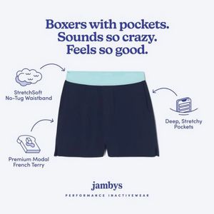 This creative wins by combining curiosity and convenience in a MOF consideration frame. The headline makes a familiar product feel novel (“boxers with pockets”), earning a second look, then immediately converts that attention into concrete reasons to believe via three labeled callouts. For solution-aware audiences, specificity matters more than hype: “no‑tug waistband,” “premium modal French terry,” and “deep, stretchy pockets” answer the usual objections (comfort, quality, usefulness) without needing long copy. The centered product shot keeps cognitive load low, while arrows and icons guide the eye in a clear hierarchy—an ad best practice for mobile scanning. The clean palette and generous whitespace signal premium positioning, helping justify a higher price point and making the brand feel trustworthy during comparison shopping.