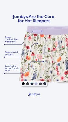 This template converts in consideration because it pairs an attractive, zoomed-in product shot with structured “proof” via feature callouts. For solution-aware shoppers (they already want cooler, more comfortable sleepwear), the annotated lines reduce uncertainty by pointing to specific construction details—waistband, pockets, and breathable fabric—rather than vague comfort claims. That clarity supports comparison shopping and makes a premium price feel justified. The clean, light canvas and high-contrast navy typography follow mobile best practices: fast scanning, one focal product, and minimal clutter. Aesthetic appeal (the floral print) draws the stop, while the functional callouts deliver the rational reasons to click and shop—an effective comfort + credibility combination for mid‑funnel audiences.