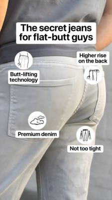Designed for men who care about how jeans fit and look from every angle, especially shoppers who feel standard denim is unflattering in the seat. It targets style-conscious, confidence-driven buyers who compare features and want comfort plus a cleaner silhouette. Best for audiences already considering new jeans and receptive to specific construction benefits.