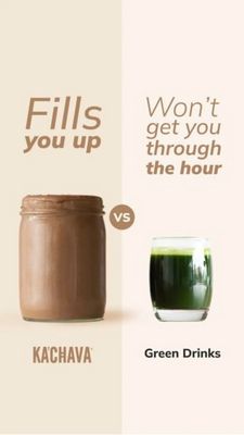 This 9:16 Story template is built for a meal-replacement shake brand that wants to win on satiety versus trendy “green drinks.” The design uses a clean split-screen comparison: a large chocolate shake...