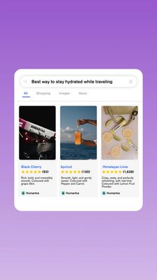 This creative wins by borrowing the visual language of search and shopping results—an environment users already associate with neutral discovery. For an unaware, top-of-funnel audience, the query headline creates instant relevance (“I’ve wondered that too”), triggering curiosity and inviting a low-effort scan. The three flavor tiles act like a mini comparison table, while star ratings and large review counts deliver social proof without needing heavy claims. The clean white card on a vibrant purple gradient keeps focus tight on the product options and makes the ad feel like a helpful travel tip rather than a pushy promotion. Best-practice wise, it reduces cognitive load (repeatable card layout), builds trust fast (ratings), and nudges the next step—click to explore flavors—making it ideal for awareness-to-consideration handoff.