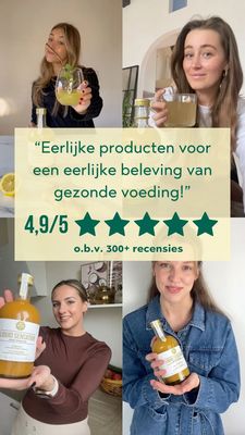This 9:16 Story template is built for a bottled wellness beverage (think functional juice, kombucha, or ginger shots) and uses a credibility-first design to move solution-aware shoppers from interest to consideration. The layout is a four-photo collage of real people holding the bottle and sipping from clear glasses, creating an at-home, “I actually drink this” feel. A wide, pale-yellow translucent banner runs across the center with a bold green testimonial quote, a large “4.9/5” rating, and five oversized star icons, followed by “based on 300+ reviews.” The soft neutral interiors and warm drink tones keep the scene approachable, while the strong green typography signals health and trust. This combination leverages social proof and health-focus triggers without needing heavy claims: the stars and review count do the persuasion. Brands can easily swap in their own bottle shot, adjust the quote to match their key benefit (gut health, energy, immunity), and localize the review line for different markets while keeping the clean, trustworthy aesthetic that performs well in Stories placement.