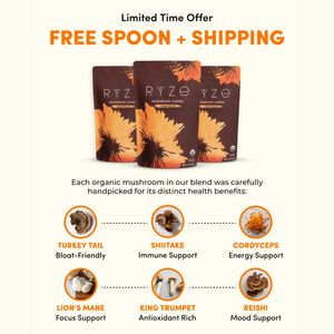 This template works because it combines urgency and value savings (“Limited Time Offer” plus free shipping and a free spoon) with fast, structured education—ideal for mid‑funnel consideration. For product-aware audiences, the decision barrier is usually “Does this blend actually do anything?” The six ingredient callouts act as a scannable proof framework: each mushroom is visually anchored with a photo and matched to a single benefit, reducing cognitive load and increasing perceived transparency. Centering multiple pouches strengthens legitimacy and signals a real packaged good rather than a generic supplement. The warm, clean background keeps the message readable on mobile, while the high-contrast orange headline ensures the incentive is the first takeaway. Overall, it follows best practices: one dominant offer, one clear product shot, and supporting reasons to believe—perfect for retargeting and offer-driven conversions.