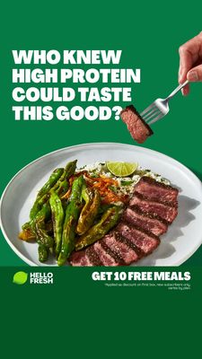 This creative wins on top-of-funnel awareness because it leads with a curiosity question that challenges a common belief: high-protein food is often perceived as dry or boring. The fork-with-a-bite and plated dish deliver immediate sensory proof, triggering craving before the viewer even knows the brand. The clean, high-contrast typography is optimized for quick Story consumption, while the single, strong incentive (“free meals”/first-box discount) converts interest into action by reducing perceived risk. For an unaware audience, the message is benefit-first (taste) rather than feature-first (macros), aligning with best practices for cold traffic. The cohesive green background and structured footer create brand trust and make it easy to swap in any meal photo, logo, or localized offer without losing clarity.