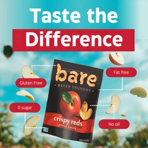 This creative works because it combines craving appeal with reassurance. The floating apple slices and bold “Taste the Difference” headline trigger curiosity and a low-friction impulse to try, while the four red badges deliver quick, label-style certainty (gluten free, 0 sugar, fat free, no oil). That pairing is ideal for TOF awareness and an “unaware” audience: it doesn’t assume prior interest in fruit chips; it simply frames the product as an easy upgrade to a cleaner snack. The dotted connectors guide the eye from benefits back to the pack, reinforcing brand recall and making the message scannable in a fast feed. High contrast (teal/blue vs red) improves readability on mobile and keeps the key claims legible even at smaller sizes.