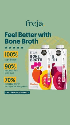 This creative works because it converts “I’ve heard of bone broth” into “I trust this one” using quantified claims and multiple credibility cues. The stacked percentage blocks create a fast, mobile-first proof ladder—three data points feel like a pattern, not a one-off claim—while the star rating and trial-participant line reinforce trust. For a solution-aware audience in the consideration stage, the layout answers the key question: “Will this improve how I feel?” The product packs are large and clear, placed after the evidence so the viewer associates results with the brand. The muted clinical palette signals seriousness, and the yellow accents pull attention to the numbers, following best practices for visual hierarchy and scannability in Story placements.