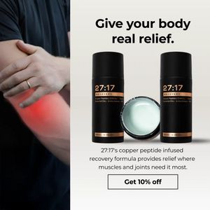 This template works because it pairs instant symptom recognition with clean, clinical reassurance. The left-side red “hotspot” visual triggers empathy and relevance (“that’s my pain”), while the right-side minimalist panel signals trust, precision, and a product that’s meant to be applied purposefully. For a solution-aware, mid-funnel audience, the copy doesn’t over-explain the category; it adds a formula cue (copper peptides/recovery) that helps comparison shopping. Showing both closed sticks and an open jar provides tangible product proof and reduces uncertainty about texture and format. The modest discount CTA is framed as a rational next step—enough incentive to try, without undermining premium positioning. Overall, it follows best practices: clear hierarchy (headline → product → benefit line → offer), strong contrast for readability, and a balanced mix of lifestyle context and packshot clarity.