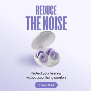 This template wins in top-of-funnel awareness because it leads with a single, instantly understood outcome—less noise—before asking the viewer to care about specs. The calm lavender background and clean product close-up create a “quiet” sensory cue that supports the promise and sparks curiosity without feeling medical. Relief is the primary trigger: the viewer imagines escaping distractions or sleeping better. The subhead handles the most common objection (earplugs = uncomfortable) by pairing protection with comfort, which reduces friction for first-time buyers. Best-practice hierarchy is strong: oversized benefit headline, clear product visualization (open case shows what you get), then a low-commitment CTA (“Try…”) that suits an unaware audience taking a first step.