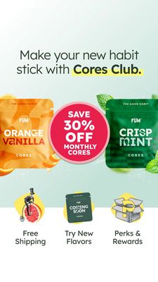 This 9:16 Story template is built for a flavored-refill subscription club positioned as a smoking alternative. The hero line “Make your new habit stick with Cores Club” sits on a clean, pale mint back...