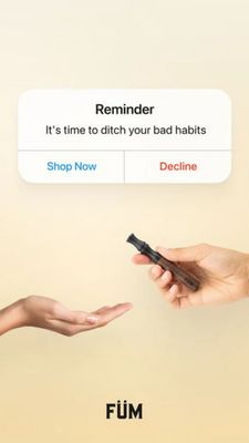 This template works because it hijacks a familiar behavioral cue: the smartphone reminder. For an unaware, top-of-funnel audience, the notification-style headline reduces cognitive load and earns an instant “this is for me” reaction. The two-button framing creates a micro-commitment moment—viewers mentally choose between self-improvement (“Shop Now”) and maintaining the habit (“Decline”). The warm neutral background keeps the message non-judgmental, while the handoff image reinforces the idea of switching to a tangible alternative. It follows best practices for Story ads: a single focal point, high legibility, and a clear CTA presented as a decision rather than a hard sell—ideal for sparking curiosity and first-click intent.