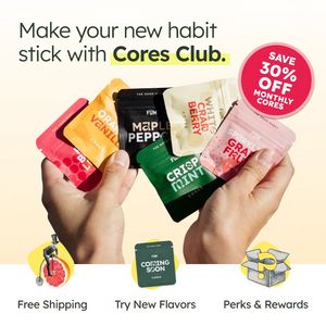 This square ad template promotes a flavored pod/refill variety pack tied to a membership-style offer (“Cores Club”). The design leads with a large, friendly headline in dark green on a warm cream back...