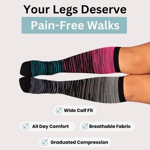 Adults who experience leg fatigue, heaviness, or mild swelling from long hours standing, walking, or traveling and are actively comparing supportive sock options. Also suited to comfort-first buyers who need wide-calf fit and want breathable fabric for all-day wear.