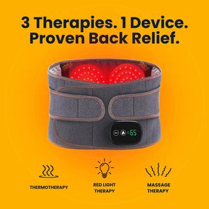 Adults dealing with recurring lower-back discomfort who want convenient, at-home relief and prefer wearable solutions over complicated equipment. They are solution-aware, compare features like heat/red light/massage, and respond to clear proof cues and easy-to-scan benefits.