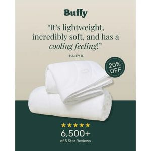 This template converts in the consideration stage by stacking two high-impact triggers: social proof and a simple discount. The testimonial-style headline makes the core benefit (soft, lightweight, cooling feel) sound experiential, which is more persuasive for bedding where “feel” is hard to evaluate online. The star row and large “6,500+ 5 Star Reviews” provide quantifiable reassurance for solution-aware shoppers who already want better sleep comfort but are choosing between brands. The product close-up remains the hero, keeping perceived quality high, while the 20% OFF badge adds a low-friction reason to act now without resorting to aggressive urgency. Clean spacing and restrained colors signal premium reliability—an ad best practice for home textiles where trust and cleanliness cues matter.