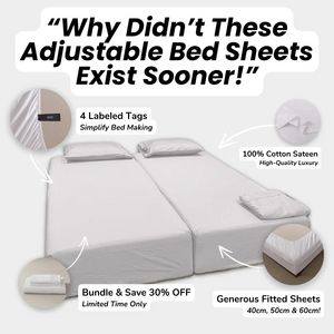 Designed for homeowners and renters who care about a tidy bed and hate the hassle of fitting sheets correctly. Especially relevant for busy parents, couples, and comfort-focused shoppers willing to pay more for premium cotton and time-saving details, and who respond well to clear feature proof and simple promos.