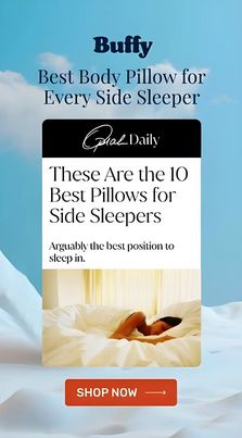 This 9:16 Story template promotes a body pillow designed for side sleepers, using an editorial “best of” endorsement to build instant trust. The background is a calm sky-blue gradient with soft cloud ...
