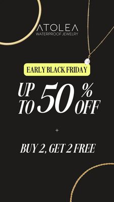 This template works because it combines three decision-stage triggers in a clean, premium frame. “Early Black Friday” creates time-based urgency and implies limited access, while “Up to 50% off” provides a strong anchor that reduces price friction for product-aware shoppers. The added “Buy 2, Get 2 Free” message increases perceived value and nudges higher quantities—ideal for jewelry where gifting and stacking are common. Visually, the black background and gold product crops signal luxury, keeping brand equity intact during aggressive promotions. The offer hierarchy is crystal clear: brand + key assurance at the top, then badge, then the discount, then the bundle. That clarity matches a BOF/decision objective: remove uncertainty, spotlight savings, and give a simple reason to purchase now.