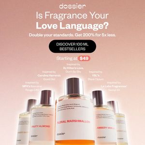 This template works because it combines aspiration and evaluation signals for a product-aware audience in the consideration stage. The romantic question (“Love Language?”) creates a soft emotional entry point and curiosity, while the concrete value claim (“200% for 5x less”) provides a rational reason to keep reading. The centered hero bottle and clean, premium packaging visuals deliver instant category recognition and elevate perceived quality—critical in fragrance where trust is built visually. The high-contrast CTA button isolates the next step (“discover”) without heavy discount messaging, and the small price badge sets an accessible anchor that reduces purchase friction. Overall, it follows best practices: one dominant headline, a single primary CTA, and a clear hierarchy that guides attention from hook to offer to action.