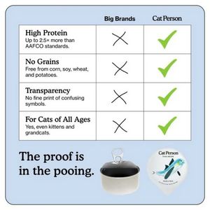 Designed for cat owners who read labels and actively compare nutrition claims before switching food. It targets practical, value-conscious buyers who want visible results (digestion, stool quality) and prefer brands that communicate clearly without fine print.