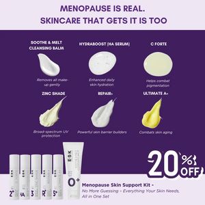 Women typically 40–60 experiencing perimenopause or menopause who notice dryness, sensitivity, pigmentation, or faster visible aging and want a routine that “just works.” They are product-aware, compare ingredients (HA, vitamin C, retinoids, zinc SPF), and respond to structured kits that remove guesswork and feel clinically considered.
