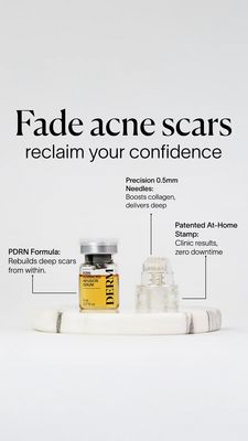 Designed for skincare shoppers (18–40) dealing with post-acne marks, pitted scars, or uneven texture who actively research ingredients and device specs before buying. It appeals to results-driven, clinic-curious consumers who want professional-style outcomes at home and are willing to pay more for credible, minimal, medical-looking branding.