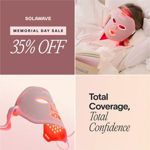 This template converts at the bottom of funnel by making the incentive unavoidable: the oversized “35% OFF” establishes immediate value and reduces price friction for a product-aware shopper. Convenience is reinforced through the relaxed in-bed lifestyle image, framing the LED mask as an easy, at-home ritual rather than a complex device. Aspiration is delivered via the soft blush palette and premium type pairing, while the “Total Coverage, Total Confidence” line translates features into an emotional payoff. Best-practice wise, the grid format improves scanning: offer (top-left), real-use proof (top-right), product detail (bottom-left), and benefit (bottom-right). For audiences already familiar with LED masks, this combination answers the last questions—Is it real? Is it premium? Is now the right time?—and nudges a decisive click with a limited-offer framing.