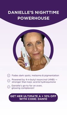 This 9:16 Story template promotes a nighttime dark-spot corrector serum/cream, built around a named routine (“Danielle’s Nighttime Powerhouse”) to make the recommendation feel personal and trustworthy...