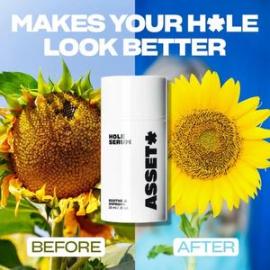 This square skincare template promotes a pore-minimizing “hole serum” with a bold, instantly readable promise: “MAKES YOUR HOLE LOOK BETTER.” The creative uses a classic before/after split-screen: on ...