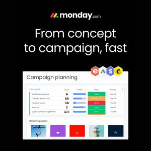 This square SaaS ad template is built to promote a project management and campaign planning platform that helps teams move quickly from idea to execution. The design uses a premium black full-bleed background with a large, center-aligned white headline (“From concept to campaign, fast”) that delivers the promise in one glance. Beneath it, a clean UI mockup showcases a campaign planning board with owners, timelines, color-coded statuses, and due dates—turning an abstract benefit (speed) into concrete proof (a structured workflow). Small integration-style icons add credibility and imply compatibility with a modern marketing stack. Strategically, the creative fits top-of-funnel awareness for “unaware” audiences: it leads with a simple outcome and uses visual evidence to trigger productivity, simplicity, and control. The minimal typography and high contrast feel trustworthy for B2B buyers, while the interface screenshot reduces perceived risk. Customize by swapping the headline to your core value prop, replacing the UI with your product’s dashboard, and updating the icon row to reflect your key integrations for the teams you serve.