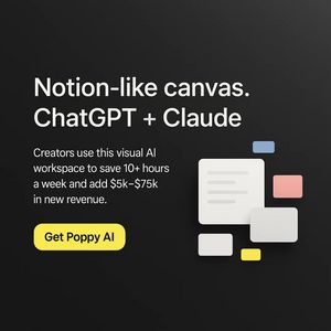 The creative relies on curiosity and efficiency triggers: a familiar mental model (“Notion-like canvas”) plus named AI capabilities (“ChatGPT + Claude”) reduces cognitive load for an unaware audience. The quantified promise (10+ hours/week and a specific revenue range) adds concrete ROI, which is especially persuasive for creators and operators who optimize time-to-output. The dark, minimal design signals a premium, serious tool, while the bright yellow CTA creates a clear visual path to action. As a TOF awareness asset, it avoids deep feature education and instead frames a simple, aspirational outcome—work faster and earn more—making it easy to click through and learn more. The abstract document-card illustration supports the “workspace” concept without requiring product screenshots, keeping the message universal across niches and use cases.