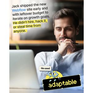 This creative works because it uses curiosity as the entry point: a short “Jack shipped early” narrative makes the viewer want the missing mechanism. For an unaware TOF audience, the template avoids jargon and instead frames the product as a productivity outcome (shipping faster, having budget left). The yellow-highlighted sentence functions like an on-screen takeaway, improving comprehension in fast-scrolling feeds. The ethical reassurance (“didn’t hire, hack, or steal time”) reduces common skepticism around speed claims and positions the tool as legitimate. The lifestyle photo builds identification with knowledge workers and founders, while the small mascot/wordmark badge provides a clear brand anchor without overpowering the message—an effective best practice for awareness ads where clarity beats complexity.