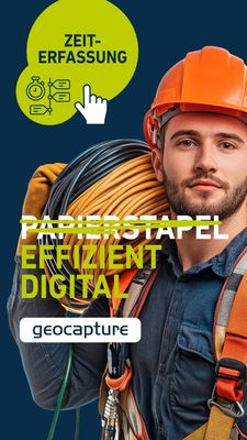 The template sells modernization through a simple contrast: paper stacks are literally crossed out while “Effizient Digital” is amplified in large type. That visual shorthand reduces cognitive load for an unaware audience and communicates the core value without needing feature lists. The construction worker portrait provides instant category recognition (field teams, job sites) and adds trust, while the lime bubble with icons acts like a “UI cue,” suggesting process and tracking. This is well-matched to TOF awareness: it frames the old way as inefficient and introduces digital time capture as the obvious next step. Best-practice elements include high mobile legibility, one primary benefit, and a clear brand module that can be swapped for your SaaS name or a demo URL as the campaign moves toward consideration.