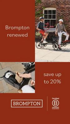 This template blends aspiration, convenience, and savings—three high-performing triggers for urban mobility. For an unaware audience at the top of funnel, the lifestyle shot does the heavy lifting: it instantly frames the folding bike as a stylish city companion, not a niche gadget. The secondary close-up adds proof of everyday usefulness (carrying items/gear), reducing skepticism and increasing perceived practicality. The “save up to 20%” block gives a clear, low-friction reason to consider a renewed product without requiring technical education. The bottom strip with logo and certification-style badge follows best practices for trust signals, which is especially important for refurbished offers where condition concerns can block clicks.