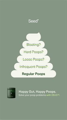 This creative wins by making an uncomfortable topic instantly discussable. The symptom list (“Bloating?”, “Hard/Loose/Infrequent Poops?”) mirrors what people privately experience, triggering recognition and curiosity. The lime strike-through is a visual “fix,” signaling relief before the viewer reads the full message, and the final bold line (“Regular Poops”) delivers a single, concrete outcome—ideal for top-of-funnel awareness. Because the audience is largely unaware, the template avoids heavy education and instead uses plain language and a clean, clinical-muted palette to build trust without sounding medicinal. The centered hierarchy keeps cognitive load low on Story placements, while the product shot and short promise line provide just enough credibility to earn the click to learn more.