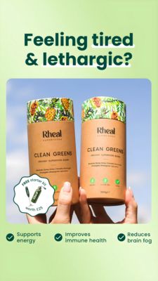 This creative works because it leads with a relatable symptom (“tired & lethargic”), matching a problem-aware audience at top-of-funnel. The large, real-in-hand product photo signals authenticity and helps viewers quickly categorize the offer as a daily wellness supplement. Curiosity and value are amplified by the starter-kit badge, which lowers perceived risk and nudges a first trial without heavy discounting. Finally, the three check-mark benefits translate complex nutrition into scannable outcomes, a best practice for Story placements where attention is short. The clean mint palette and minimal iconography reinforce “natural/clean ingredients,” aligning with health-aspiration triggers and making the message feel credible rather than hype-driven.