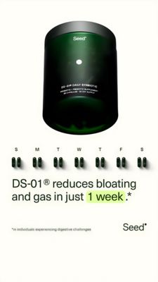 This template wins by combining scientific credibility with simplicity. The centered packshot and restrained off‑white/green palette signal a premium, research-led supplement, while the weekly capsule row turns the product into an easy daily habit—reducing mental friction. The headline targets a specific, high-intent pain point (bloating and gas) and pairs it with a concrete timeframe (“1 week”), leveraging the time-to-results trigger to overcome skepticism. Because it assumes product awareness, it fits mid-funnel consideration: shoppers are not learning what probiotics are; they’re deciding which one to trust. The minimal layout, highlighted claim, and small disclaimer area align with best practices for compliant, scan-friendly ads that prioritize one message and one proof-like detail at a time.