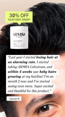 This template wins by stacking high-intent triggers for a product-aware, BOF audience. The first-order “30% OFF” badge functions as an immediate risk reducer and pushes action without needing extra explanation. The long, formatted testimonial then delivers social proof with specific, time-bound transformation cues (“within 4 weeks,” “baby hairs”), which increases perceived credibility and helps shoppers justify purchase. The full-bleed hair background keeps the message contextually relevant, while the clean jar packshot reassures users they’re buying a real, packaged supplement—not an abstract promise. Overall, it follows best practices for decision-stage ads: clear offer, unmistakable product, and a single compelling proof asset with scannable emphasis points.