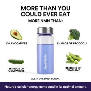 The creative uses curiosity (“More than you could ever eat”) and value framing by converting an abstract supplement dose into concrete food quantities. This mental-math shortcut makes the potency claim feel believable and easy to share, especially for solution-aware shoppers who already recognize NMN and are now comparing brands. The centered product shot keeps attention on the bottle while the symmetric food callouts act as evidence, supporting a mid-funnel consideration objective. The minimal white background and bold typography follow best practices for feed readability and reduce distraction, letting the numbers do the persuasion. The “all in one daily scoop” line reinforces convenience, addressing a common barrier (time/consistency) without relying on hype. Overall, it pairs a proof-style comparison with a clean, science-forward aesthetic that signals legitimacy—key for supplements where trust and perceived dosage strength drive conversion.