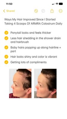 This 9:16 Story template is built like a phone screenshot note, making the message feel unpolished, real, and instantly believable. At the top, a clear headline frames the claim as a personal update (“Ways my hair improved…”), followed by a scannable checklist with bold yellow check icons—ideal for highlighting multiple micro-benefits (thicker ponytail, less shedding, new baby hairs, shine, compliments). The lower section delivers the proof: two side-by-side profile photos in a clean before/after layout that visually reinforces the bullet points. The design uses an off‑white background, dark gray typography, and warm yellow accents, keeping attention on the claims while signaling “notes app” authenticity—strong social-proof and curiosity triggers for top-of-funnel awareness audiences who aren’t actively shopping yet. It works especially well for hair-support supplements because it reduces skepticism by pairing specific outcomes with visual evidence. Customize by swapping the brand name, adjusting the number of scoops/dose, replacing the checklist with your top 4–6 measurable results, and inserting your own matched lighting photos for credibility.
