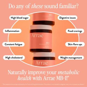 This creative works because it begins with a recognition-based question and a cluster of relatable symptoms, a strong curiosity + problem/solution trigger for cold audiences. At top-of-funnel and “unaware” awareness level, people rarely search for a specific ingredient— they notice discomfort (fatigue, cravings, digestion) and look for an explanation. The pill-shaped callouts create a fast self-diagnosis moment, increasing time-on-ad and relevance without overwhelming copy. The centered product stack anchors the solution visually, while the warm gradient and elegant serif typography signal a premium, gentle “natural” wellness positioning. The final benefit line shifts the viewer from problem identification to aspiration (improve metabolic health), making “Learn more” a low-friction next step that fits compliance-sensitive supplement marketing.