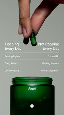 This creative works because it turns a sensitive digestive topic into a fast, logical comparison. The side-by-side “every day vs not every day” framing uses the comparison trigger to simplify decision-making for solution-aware shoppers, while the relief language speaks to immediate pain points (bloating, discomfort, anxiety). In a MOF consideration context, the table format reduces cognitive load: viewers scan three rows and instantly understand the promised outcome without needing long explanations. The minimal gray background and premium green packaging signal credibility and “clean” wellness branding, which helps trust—critical for supplements. Showing capsules in-hand adds concreteness and tangibility, reinforcing that the product is straightforward to take as a daily routine. Overall, it follows best practice for mobile Stories: strong hierarchy, short lines, and a clear visual anchor product shot.