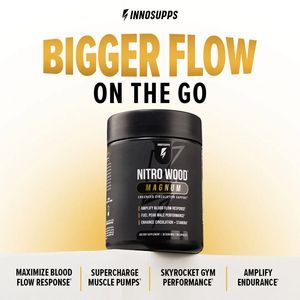 This template works by combining aspiration and performance-boost triggers with a convenience cue that reduces friction. The oversized gold headline delivers a single, memorable promise (“bigger flow”), while the premium black-and-gold palette signals potency and quality—important heuristics in the supplements category. Because it targets solution-aware users in a mid‑funnel consideration stage, it avoids heavy education and instead provides fast, comparable proof: four bottom benefits separated into clear columns. This scan-friendly structure supports mobile attention patterns and helps prospects justify a click or purchase. The centered pack shot reinforces brand recognition for retargeting and keeps the message grounded in a tangible product, aligning with best practices for static social ads where clarity and hierarchy drive conversion.